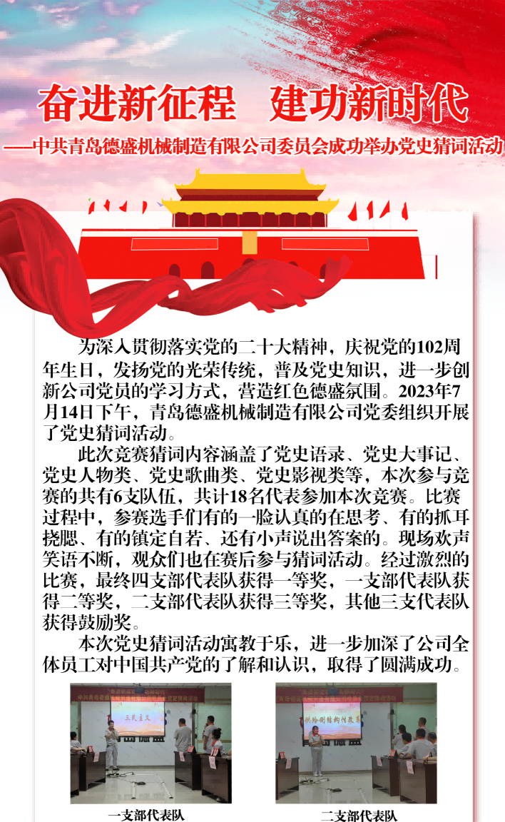 奋进新征程 建功新时代——中共青岛德盛机械制造有限公司委员会成功举办党史猜词活动
